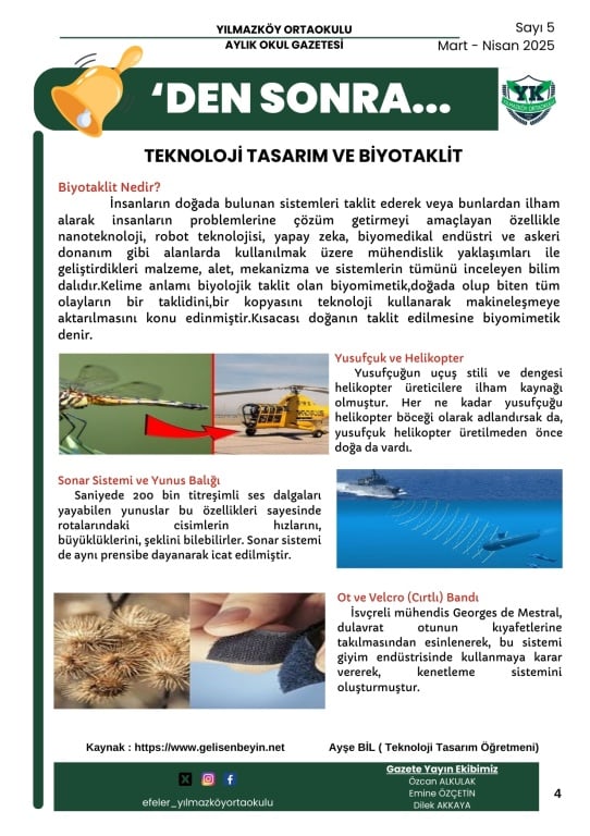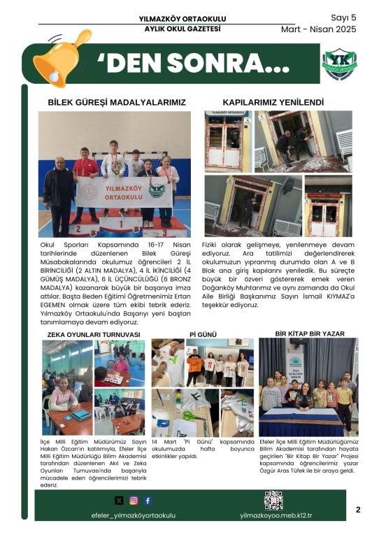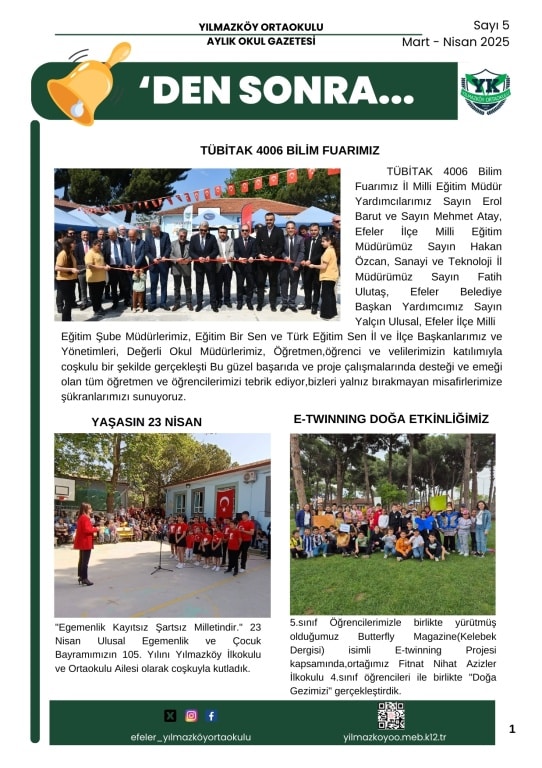 "Zilden Sonra" Aylık Okul Gazetemiz Sayı 5 sayısı yayında.